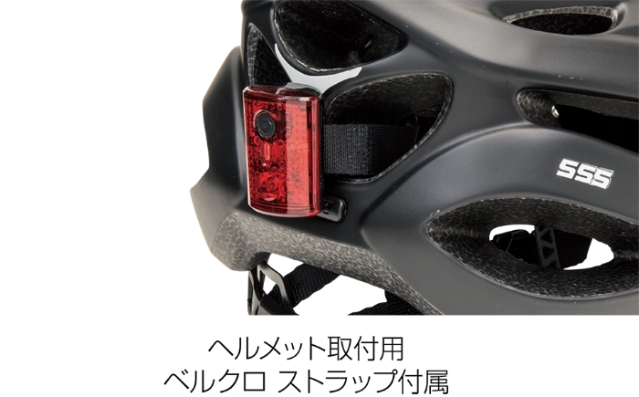 レッドLED 3個を搭載したUSB充電式リアライトです。16.2gの超軽量設計ながら、継ぎ足し充電が可能なリチウムイオン電池を内蔵。高輝度点灯(2時間)からパターン点灯(最長25時間)まで4つのモードを搭載し、後方からの被視認性を高めます。ローバッテリーインジケーター付きで充電タイミングを把握しやすく、シートポスト用ブラケットのほか、ヘルメット取付用ストラップも付属。
