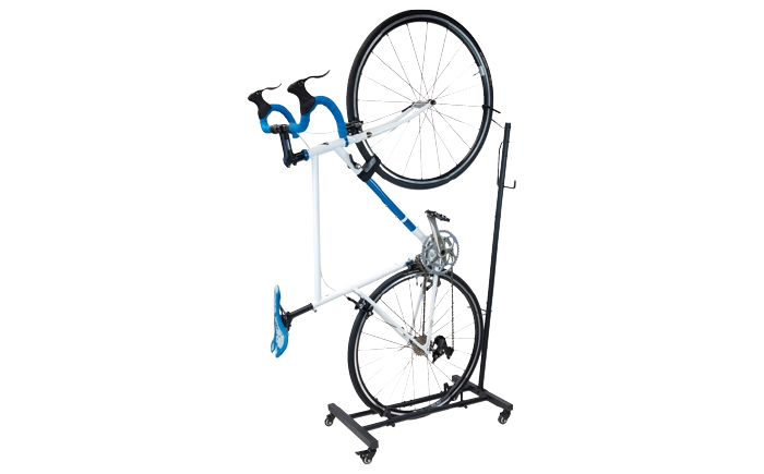 最小限の床面積で自転車を保管できる、縦置きタイプのバイクスタンド。