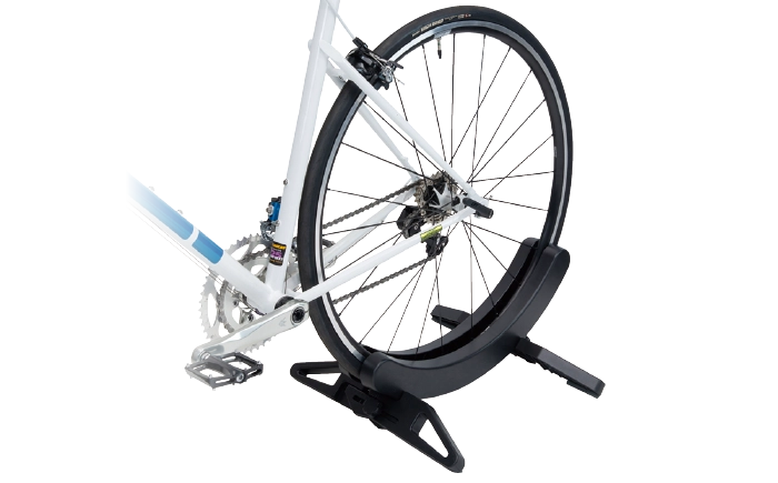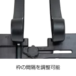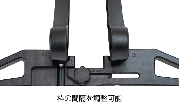 タイヤ幅に応じて枠の間隔をボルトアジャスターで調整可能なバイクスタンド。 ABS樹脂を採用し、軽量性と安定性を両立しています。